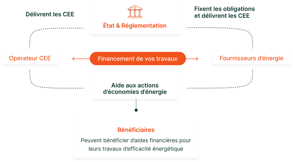 Le dispositif des Certificats d’Économies d’Énergie s’appuie sur le principe du pollueur-payeur. Concrètement, les fournisseurs d’énergie, dits « obligés », doivent atteindre un quota d’économies d’énergie proportionnel à leurs volumes de vente. Pour remplir cette obligation, ils incitent financièrement leurs clients – qu’il s’agisse de ménages, d’industries, d’entreprises ou de collectivités – à adopter des actions concrètes pour réduire leur consommation énergétique.